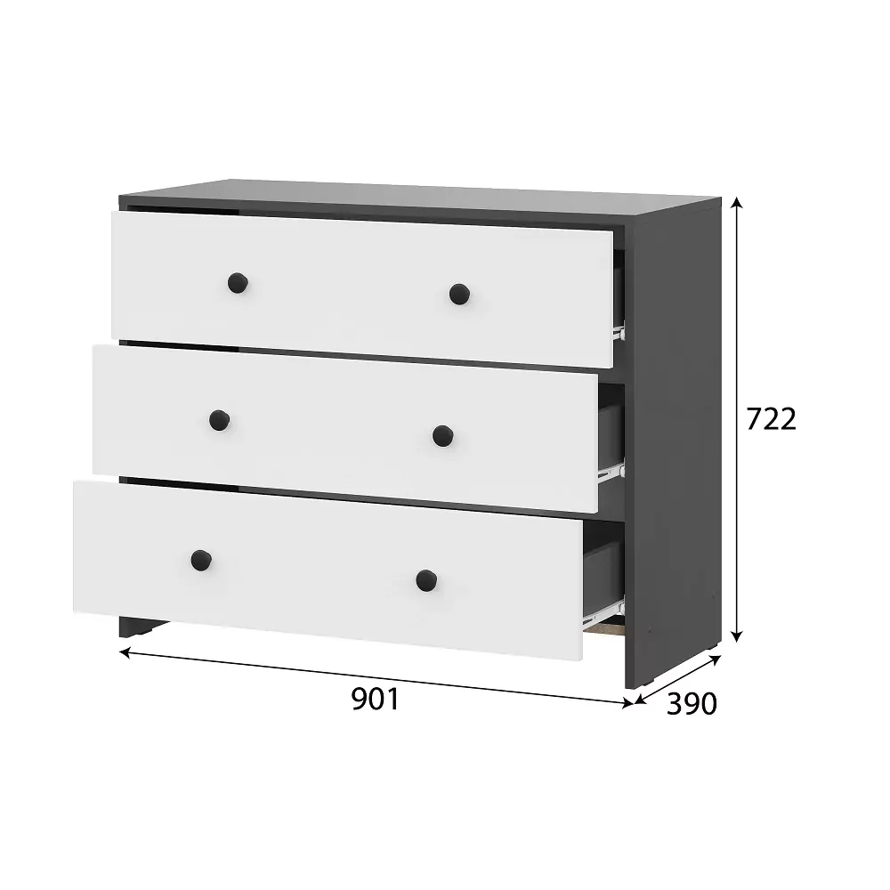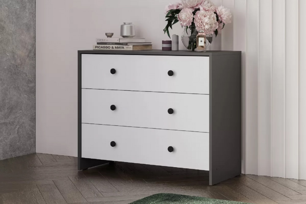 Модульная система "Дольче" Комод 3 ящика Графит / белый в Лангепасе