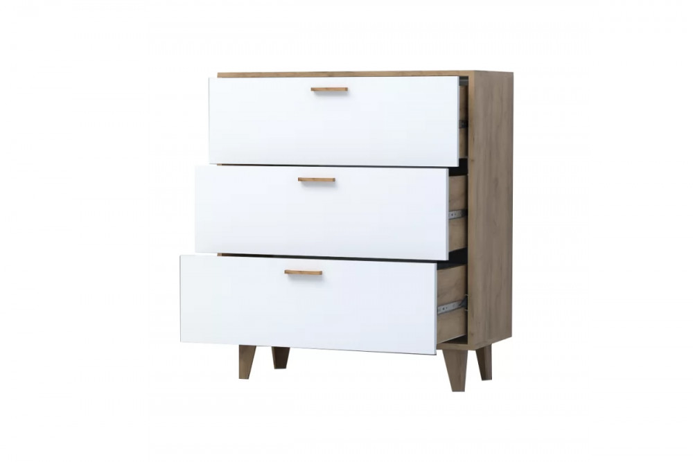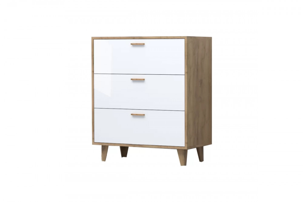 ЭГО К-3 Комод с 3мя ящиками, дуб крафт золотой/белый глянец Диал