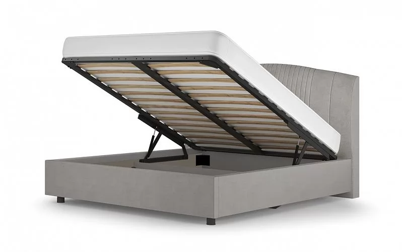 Среди преимуществ кровати можно выделить наличие бельевого вместительного короба, в котором удобно хранить различные вещи и постельные принадлежности. Особую прочность кровати придает металлический держатель основания из стали 2 мм., а надежный газлифт обеспечивает легкий доступ к бельевому коробу.