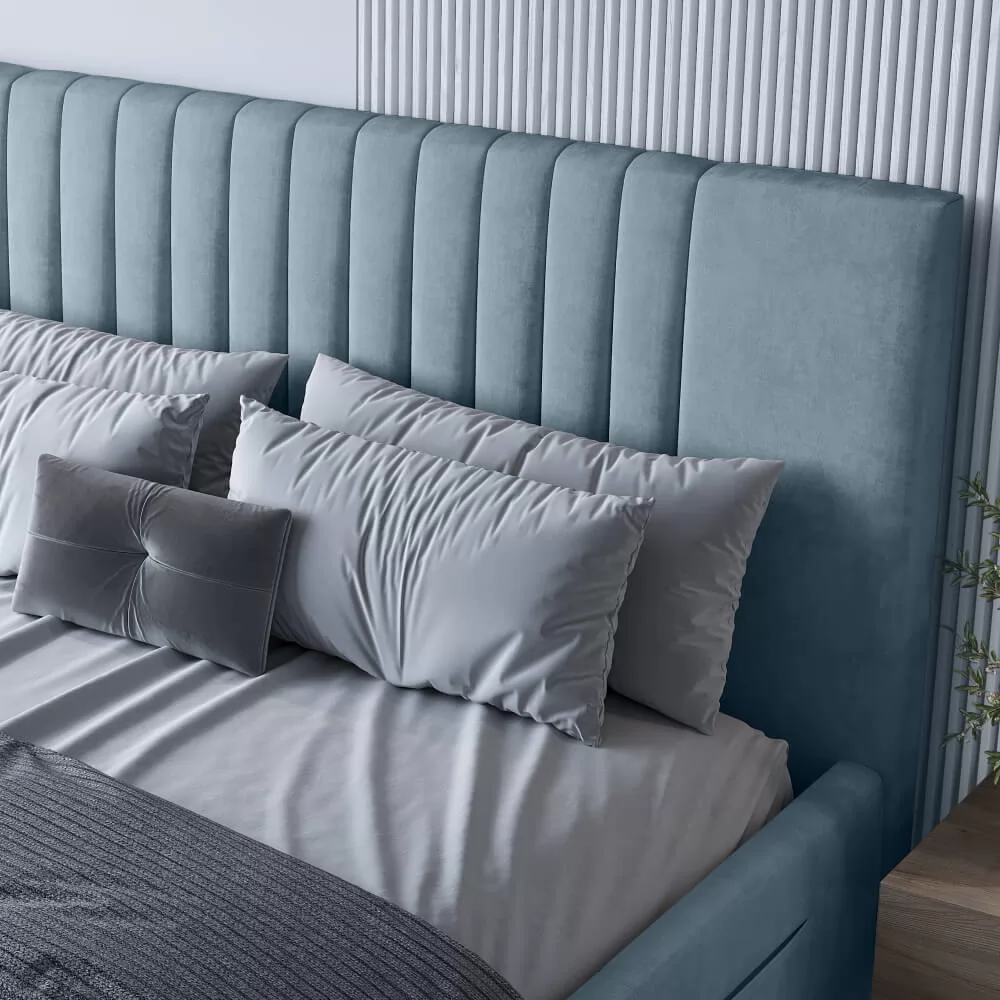 Дизайн с вертикальными линиями изголовья, разбавят монотонность интерьера.