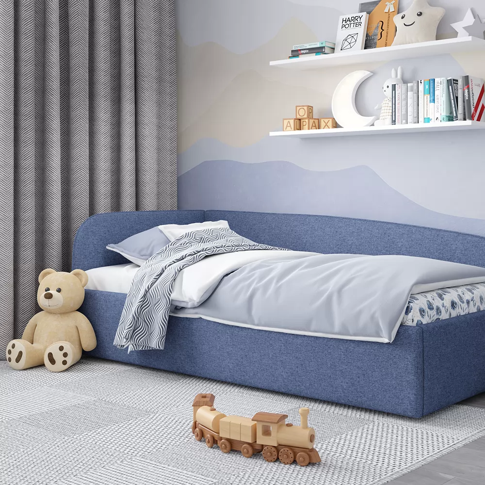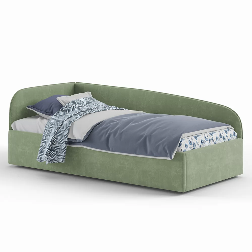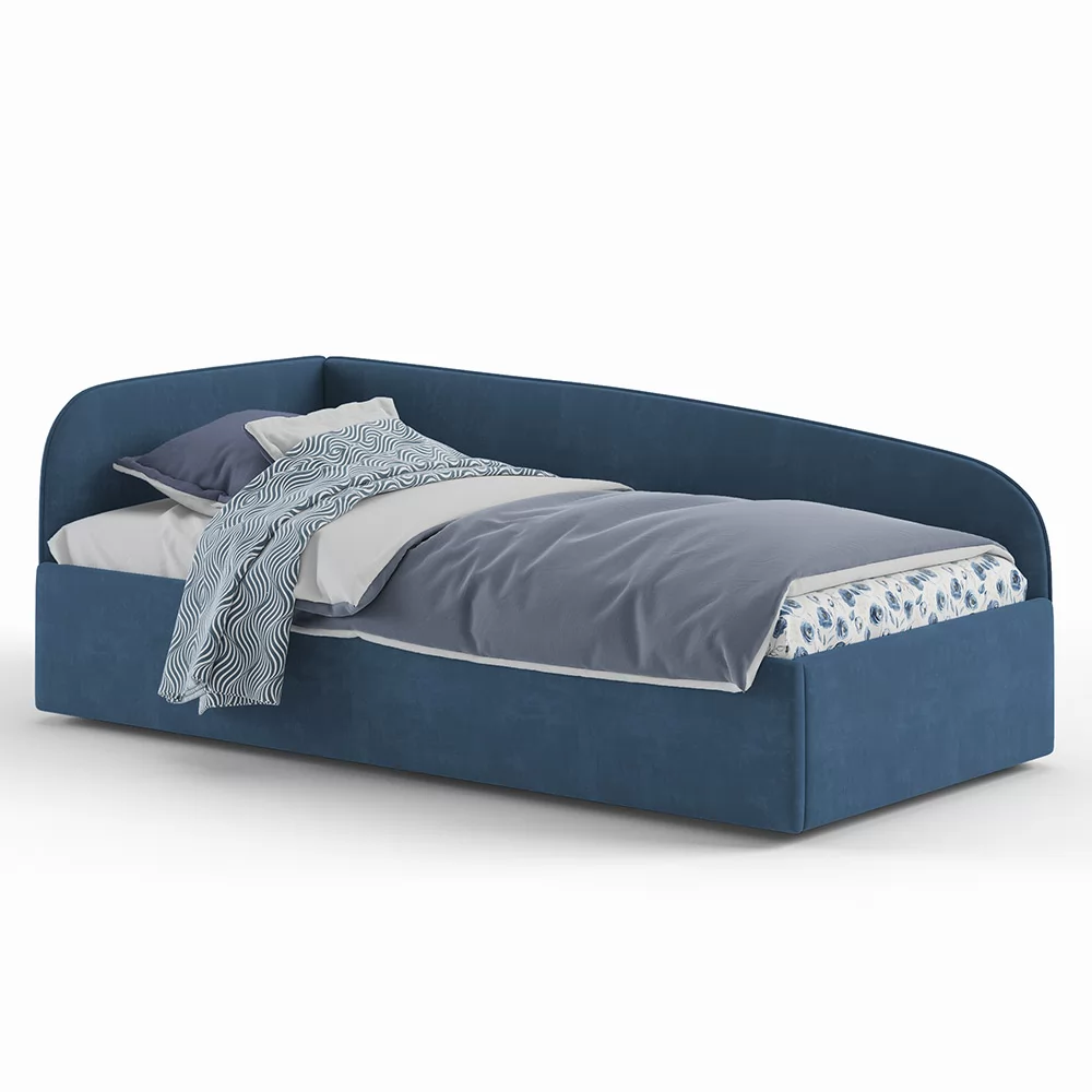 Кровать с универсальной малой спинкой, которую можно установить справа или слева. Обратите внимание, что кровать в базовой комплектации идет с логотипированной универсальной спинкой.