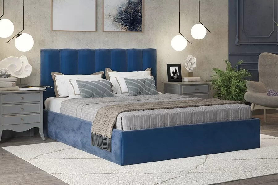 Кровать Элен 1400*2000 мм, велюр NEO 27, синий в Лангепасе