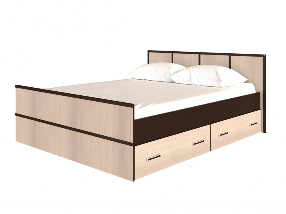 Данная модель оснащена двумя выдвижными ящиками, в которых можно хранить постельные принадлежности или любые необходимые вещи. Изделие не имеет ножек, а значит избавит вас от скопления пыли под основанием.