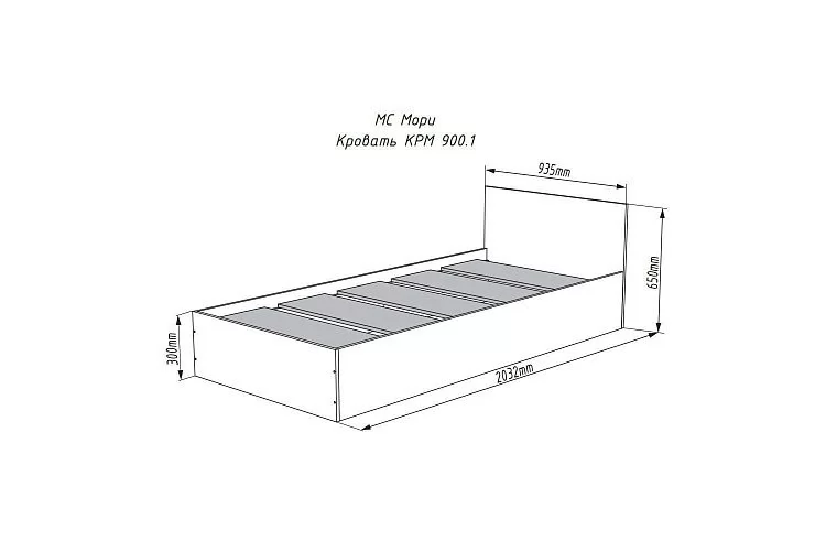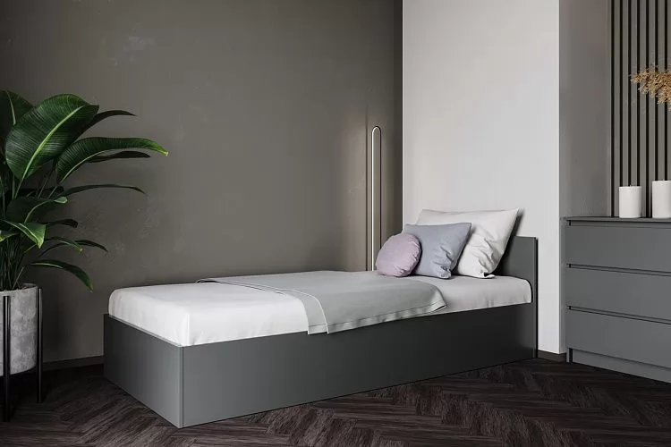 МОРИ КРМ 900.1/1 Кровать (сп/м 900*2000мм), ЛДСП Графит МП (НАСТИЛЫ) в Лангепасе