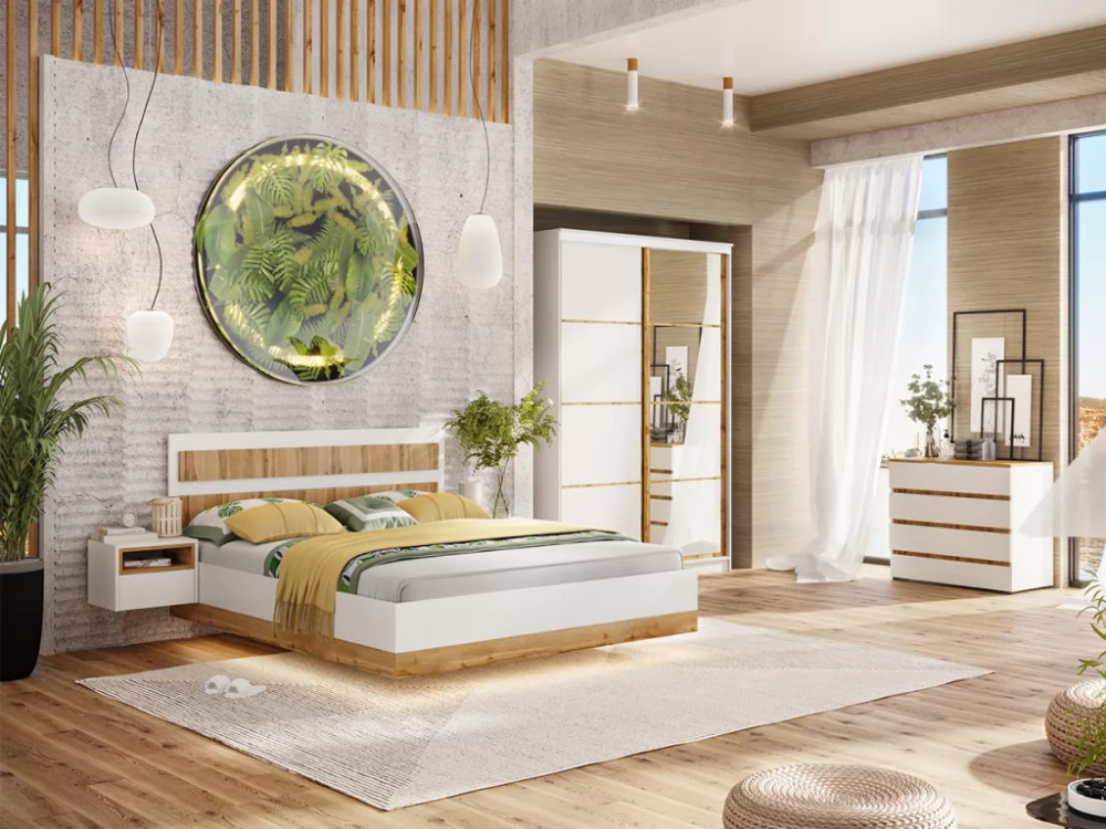 Спальный гарнитур Дубай Белый жемчуг/Дуб Вотан в Лангепасе