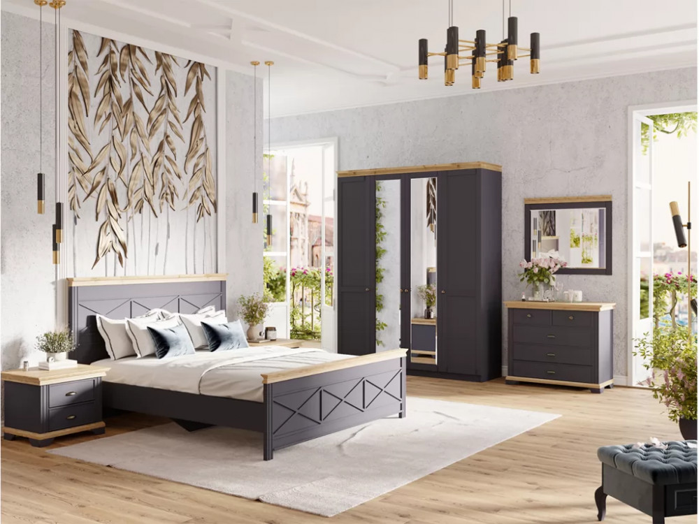 Спальный гарнитур Лиана-1 Дуб Крафт Золотой/Графит в Лангепасе