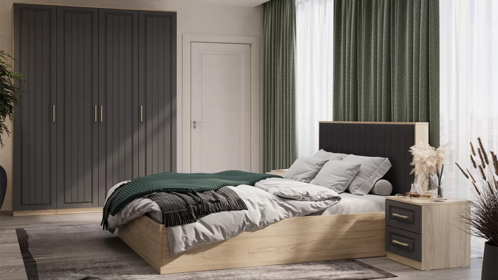Спальный гарнитур «Сэнди» №4 Вяз благородный, Серый вулкан, Велюр Графит в Лангепасе