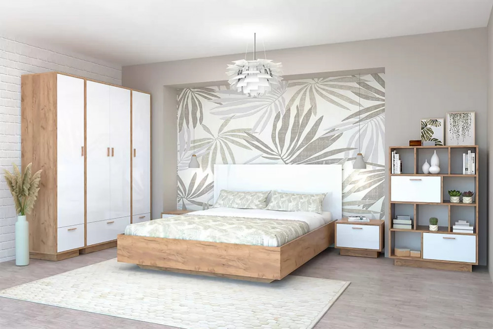 Кровать Эго арт. 031, 1600*2000 мм, дуб крафт золотой/белый глянец 1 шт